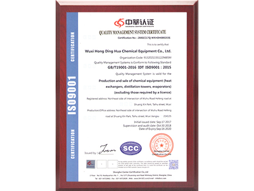 無錫弘鼎華化工設備有限公司成立于2010年,位于風景秀麗的太湖之濱,中國江蘇省無錫市。公司是集石化設備研究、開發、生產、銷售、安裝、調試為一體的化工設備技術企業,主要制造各種規格的反應設備、塔器設備(萃取塔、轉盤萃取塔、DMF回收塔)、生物柴油設備、反應設備、換熱設備、發酵提取過濾設備、干燥分散混合設備、濃縮設備、糠醛設備、無水乙醇設備等系列產品。